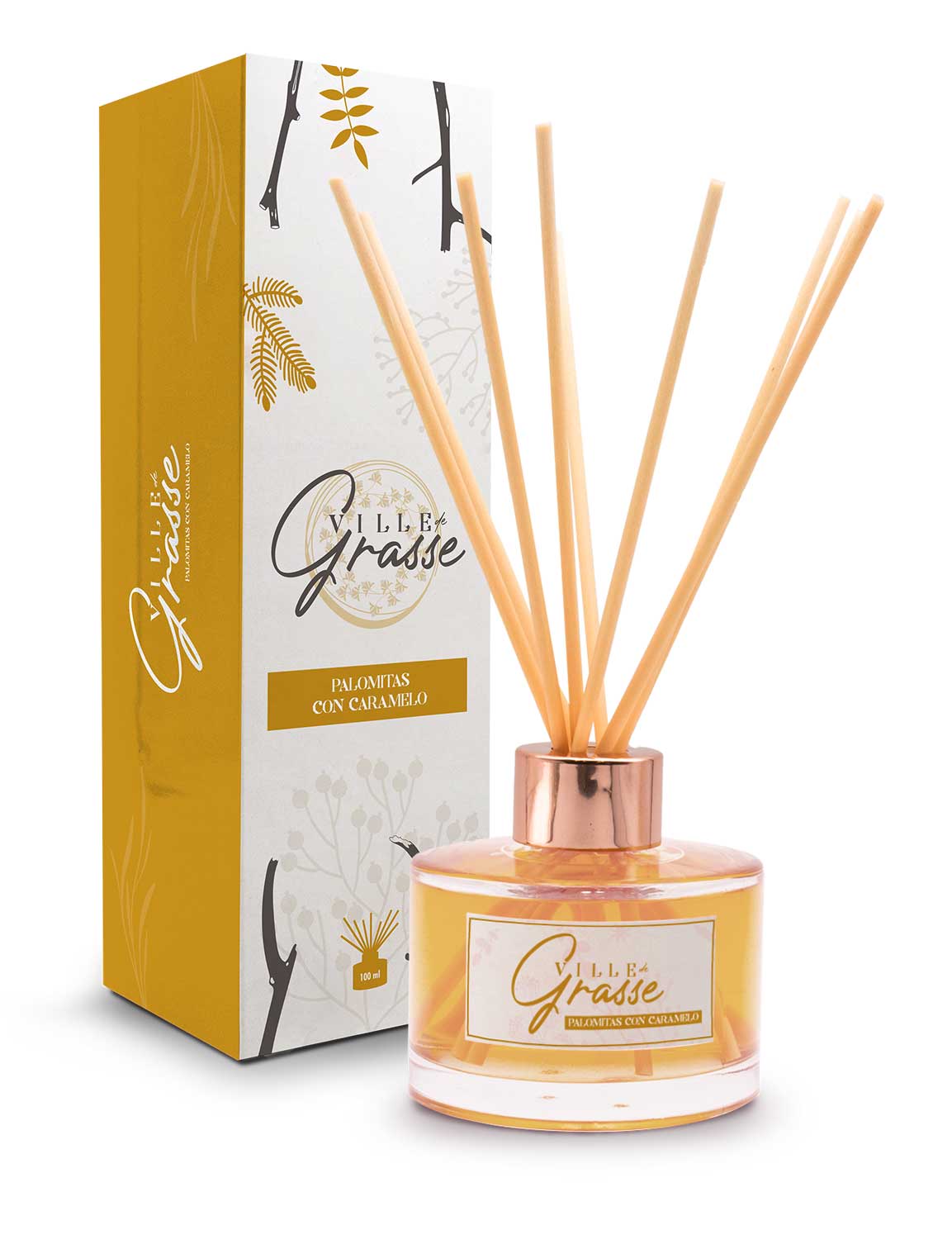 Nuestro mikado Ville de Grasse de palomitas con caramelo es el aroma perfecto para darle a tu hogar el toque cálido y acogedor que tanto te gusta. Está formada por notas de salida tan deliciosas como la avellana, el plátano y el coco que se mezclan con un toque de dulce de leche y praliné. Un auténtico placer para el gusto y el olfato que puedes disfrutar en formato mikado de 100ml.